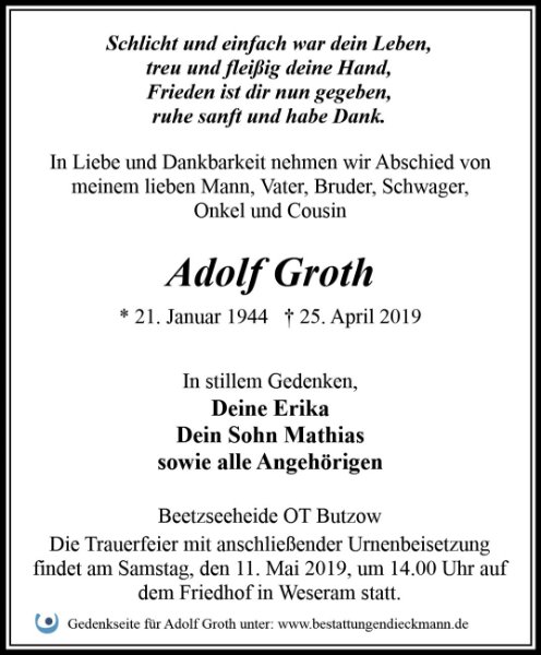gestorben am 25. April 2019 in Brandenburg an der Havel