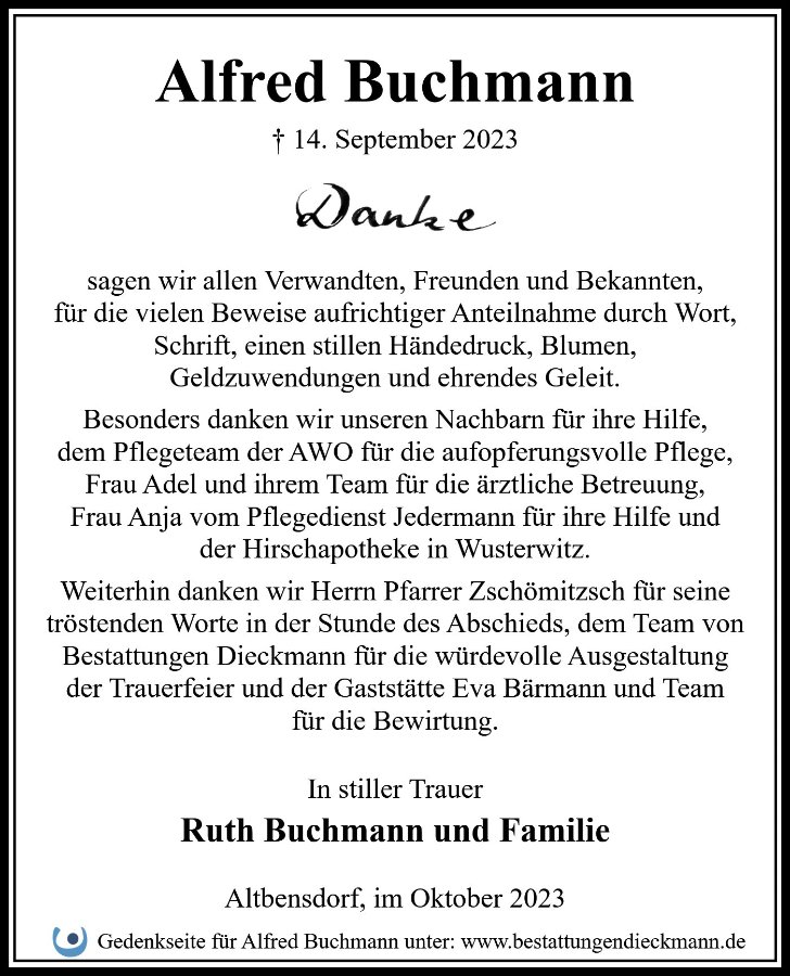 gestorben am 14. September 2023 in Bensdorf OT Altbensdorf