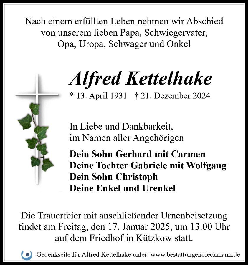 Alfred Kettelhakegestorben am 21. Dezember 2024