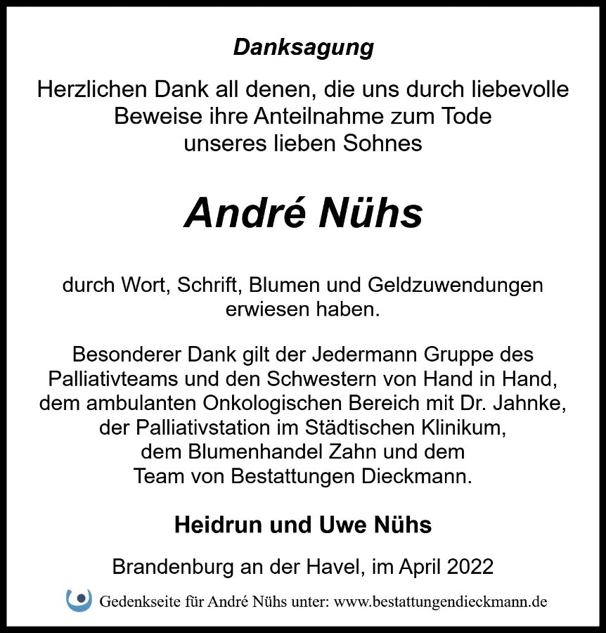 Liebe Familie von André, ich kann gar nicht in Worte fassen wie traurig mich diese Nachricht macht. Ich habe mehrere Jahre mit André zusammen gearbeitet und er war immer ein geselliger aber sehr ruhiger Typ. Hat immer ein lustiges Wort übrig gehabt. Es ist wirklich schrecklich. Ich hoffe sie können ein bisschen Trost und kraft finden.