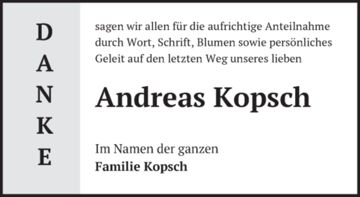 Liebe Familie Kopsch ich möchte Ihnen mein Mitgefühl ausdrücken.