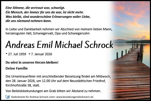 wir wünschen Ihnen von Herzen viel Kraft, dass Sie Menschen um sich haben, die Ihnen in dieser schweren Zeit beistehen und Halt geben. Zusätzlich können Sie auf dieser Gedenkseite Erinnerungen teilen und so das Andenken gemeinsam wachhalten.