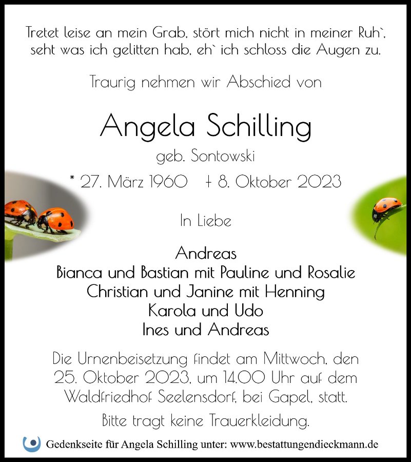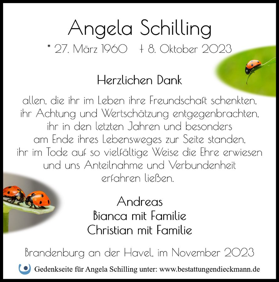 Angela Schillinggestorben am 8. Oktober 2023