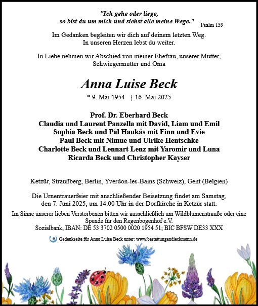 gestorben am 16. Mai 2025 in Beetzseeheide OT Ketzür