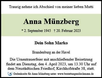 gestorben am 20. Februar 2023 in Brandenburg an der Havel
