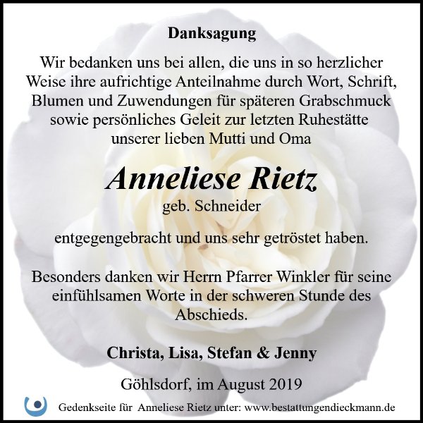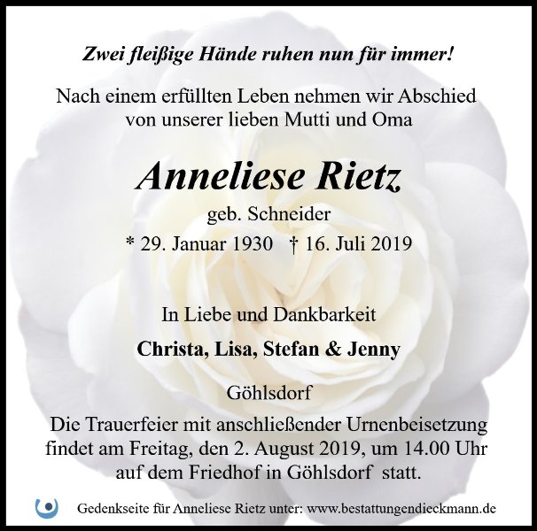 Anne-Liese Rietzgestorben am 16. Juli 2019