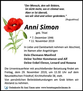 Sprechen Sie im Kondolenzbuch den Hinterbliebenen Ihr Beileid aus und teilen Sie persönliche Gedanken und Erinnerungen mit anderen.