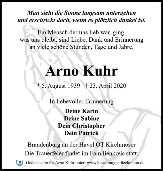 gestorben am 23. April 2020 in Brandenburg an der Havel OT Kirchmöser