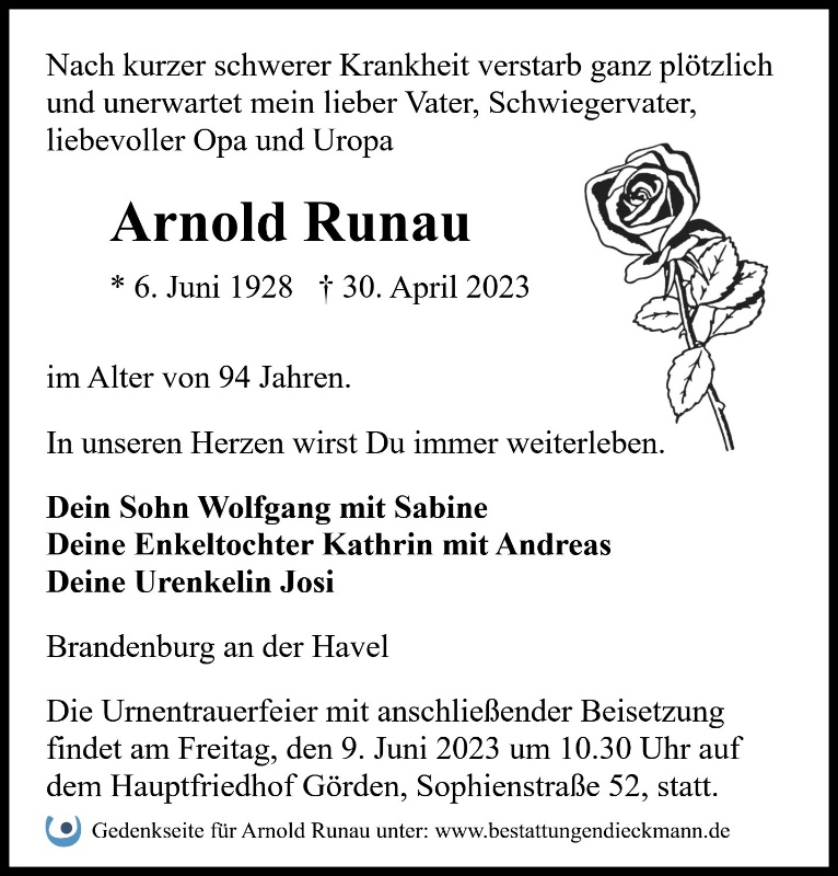 in diesen Tagen fühlen wir mit Ihnen und wünschen Ihnen von Herzen, dass Sie aus den glücklichen Erinnerungen Kraft schöpfen, um positiv in die Zukunft zu gehen. Diese Gedenkseite möge Ihnen dabei helfen, Ihre Trauer zu teilen und das Andenken gemeinsam wachzuhalten.