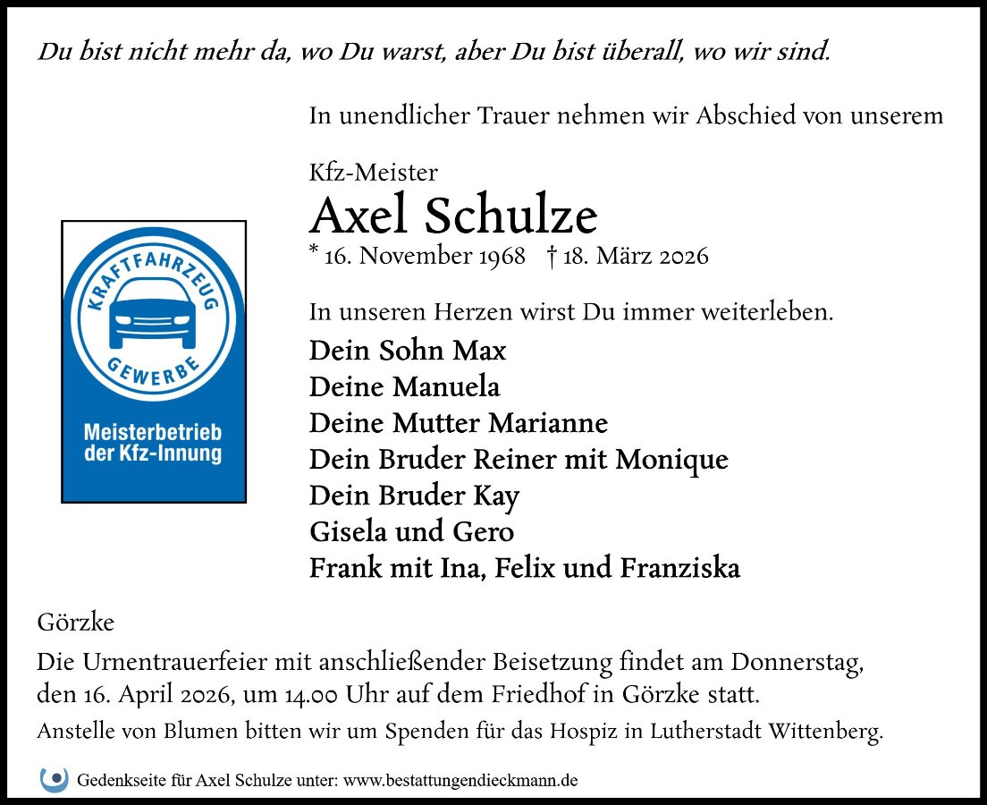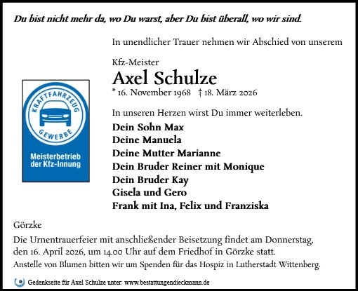 geboren am 16. November 1968 in Belzig gestorben am 18. März 2026 in Lutherstadt Wittenberg