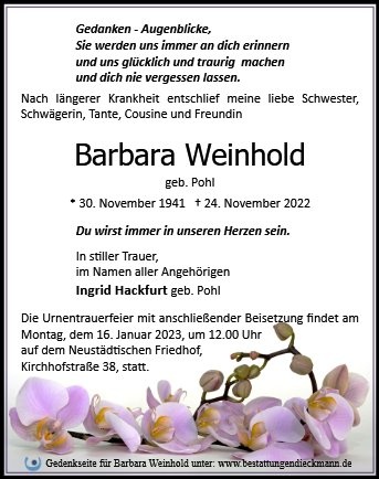 Sprechen Sie im Kondolenzbuch den Hinterbliebenen Ihr Beileid aus und teilen Sie persönliche Gedanken und Erinnerungen mit anderen.