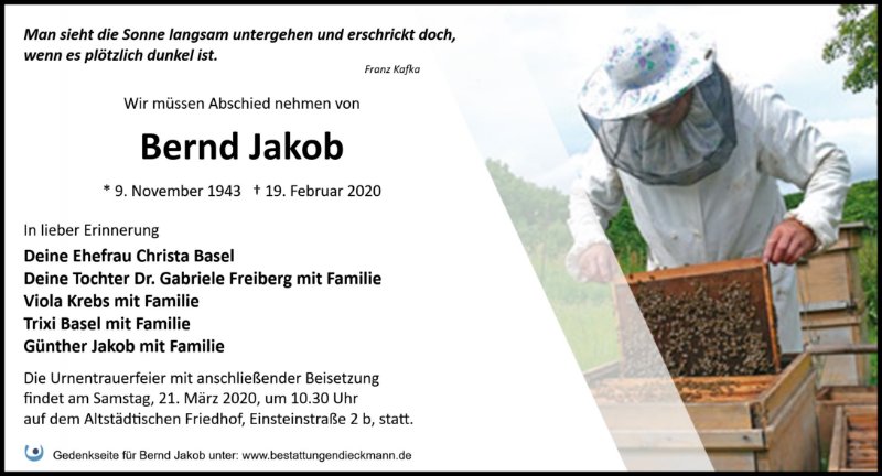 Liebe Familie von Heinz Jakob,