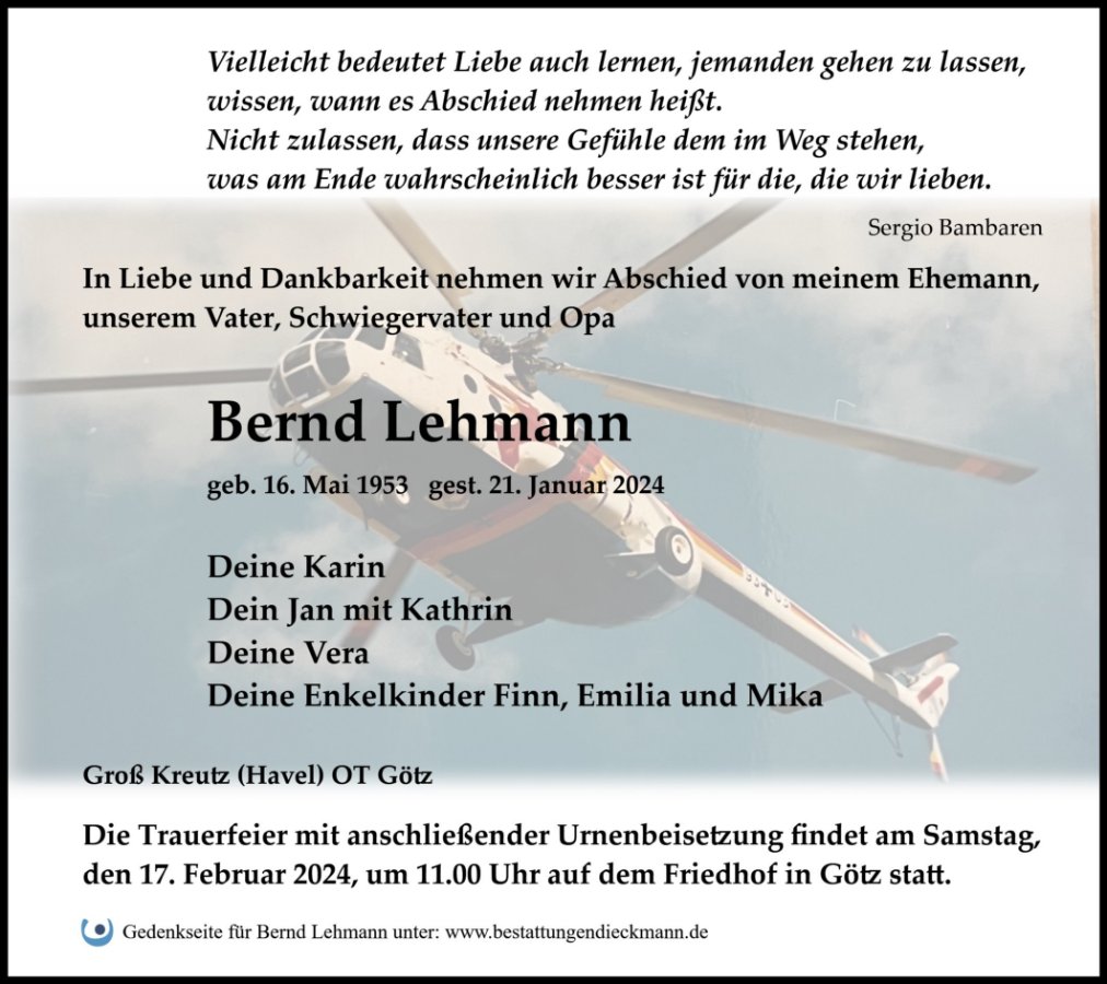 ich kannte Bernd als aufrichtigen Kommandeur, ehrlichen Kameraden und hervorragenden Piloten. Die Nachricht von seinem Tod ging mir sehr nah.