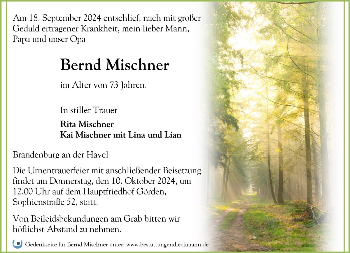 Bernd Mischnergestorben am 18. September 2024
