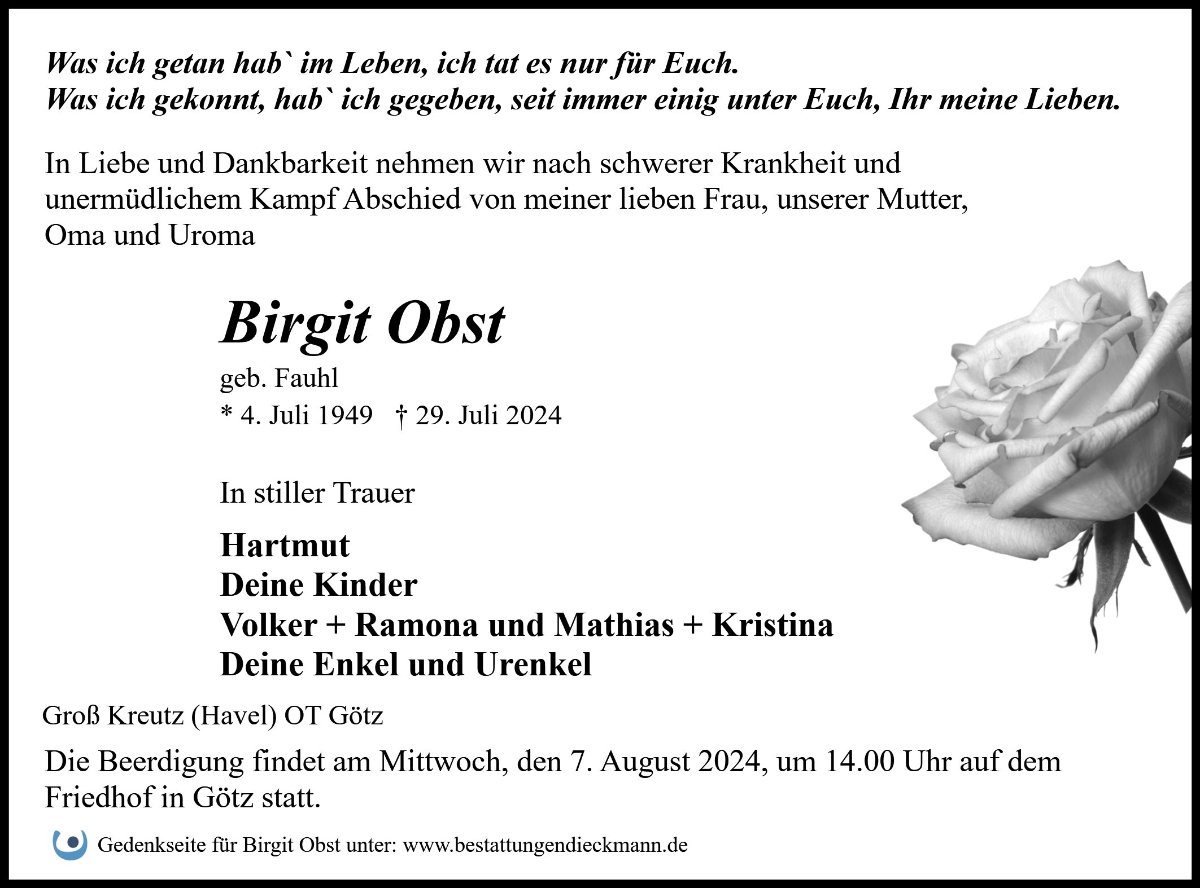 Birgit Obstgestorben am 29. Juli 2024
