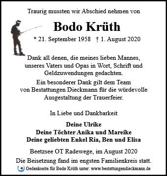 gestorben am 1. August 2020 in Beetzsee OT Radewege