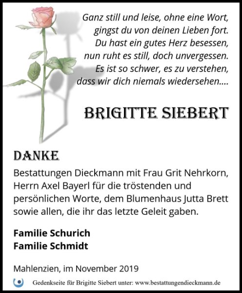 dieser Abschied scheint so endgültig. Unsere Online Gedenkseite soll Ihnen und Ihren Erinnerungen ein Raum geben. Einen Raum für Worte, Bilder oder für eine stille Kerze. So werden die vielen unterschiedlichen Gedanken zum Dahinscheiden Ihrer Verstorbenen weiter getragen und bleiben im Kreise der Familie und Ihrer Freunde erhalten.