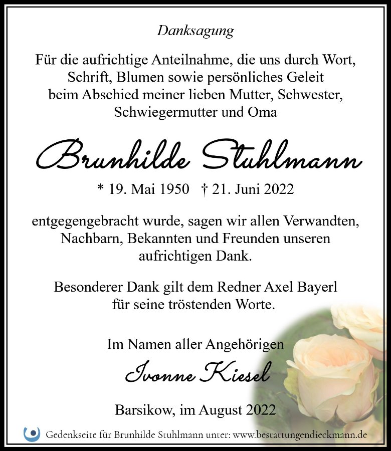 Brunhilde Stuhlmanngestorben am 21. Juni 2022