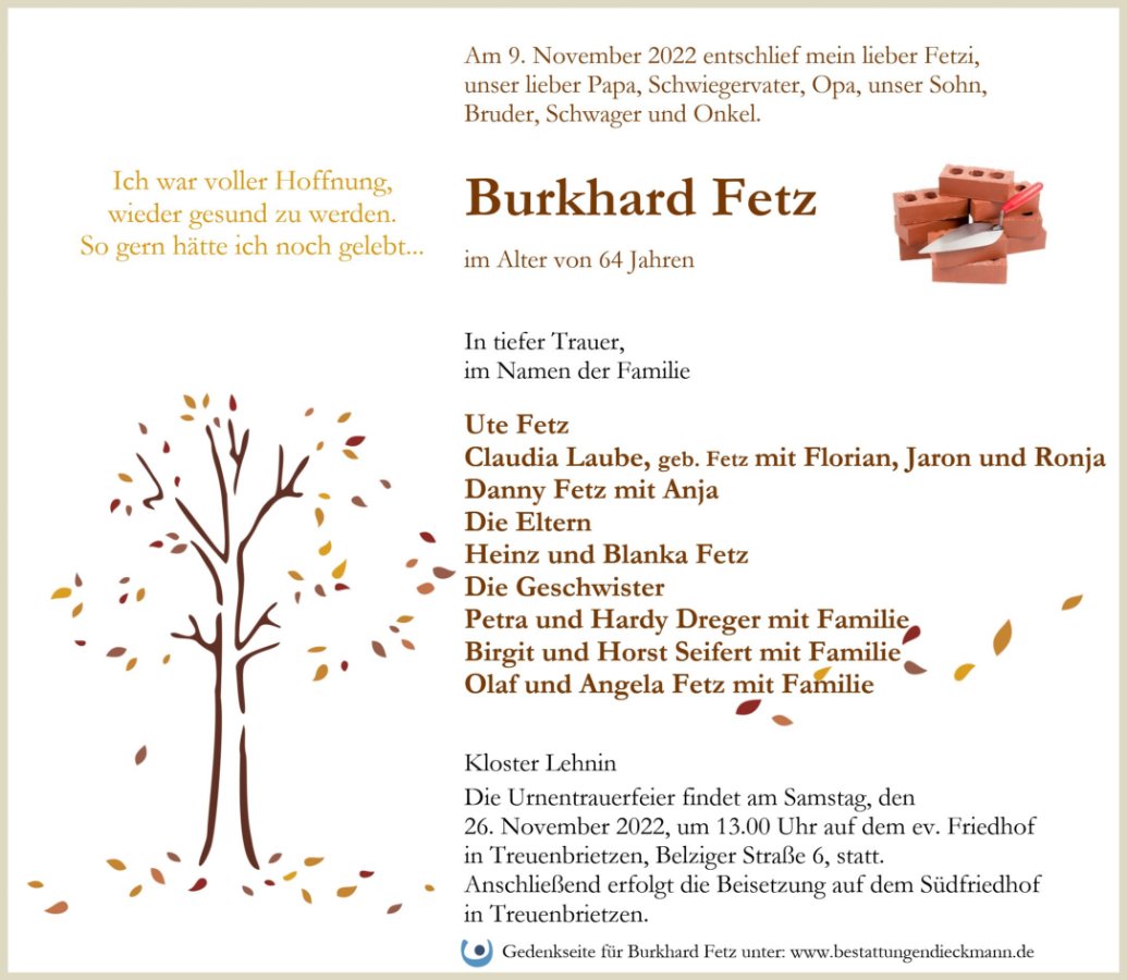 Burkhard Fetzgestorben am 9. November 2022