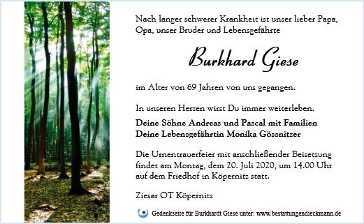 Urnentrauerfeier, Friedhof Köpernitz