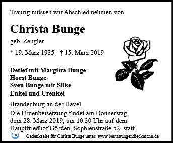 Christa Bunge geb. Zengler