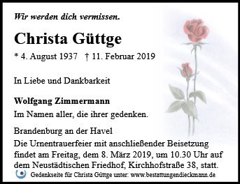 gestorben am 11. Februar 2019 in Brandenburg an der Havel