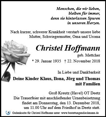 Christel Hoffmann geb. Mettcher