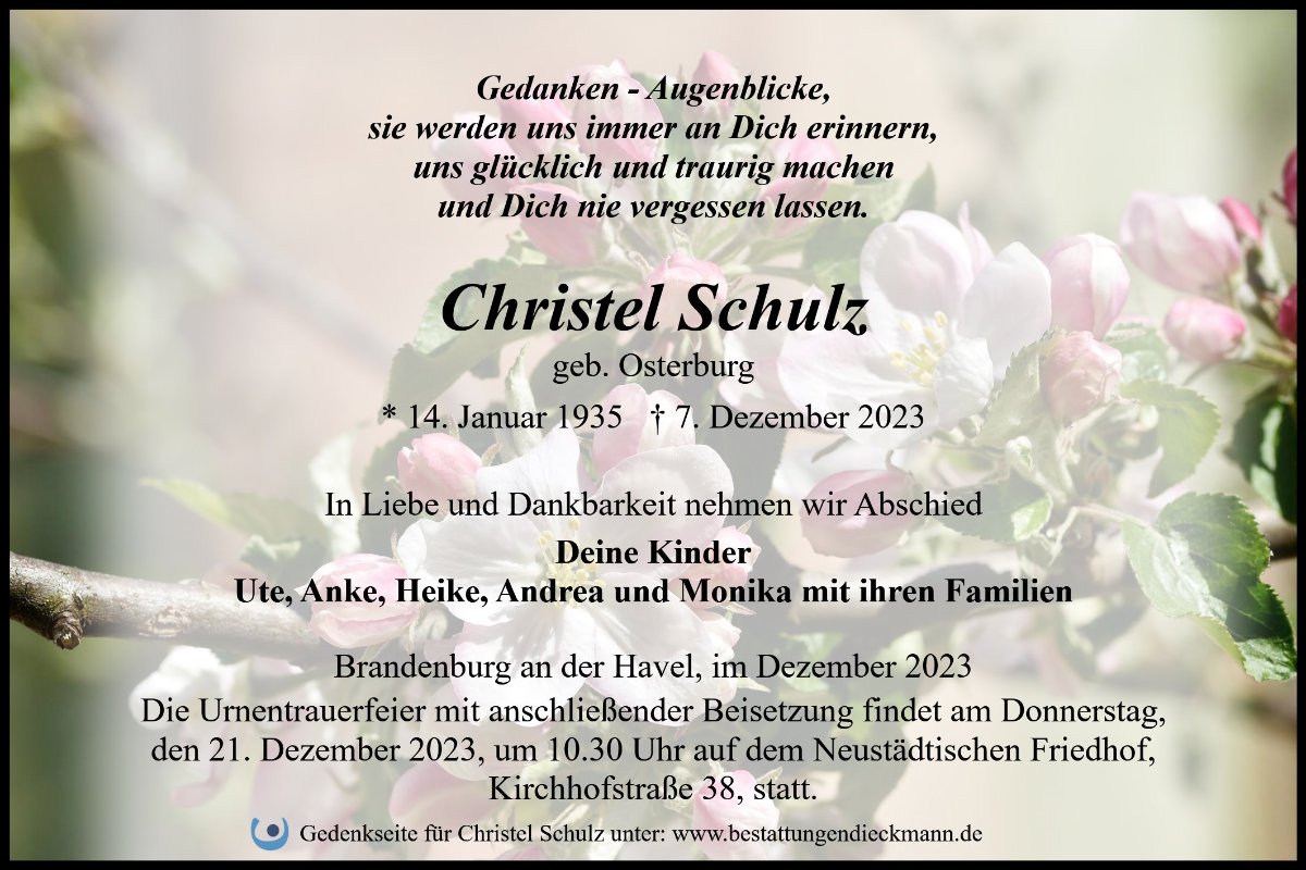 Christel Schulzgestorben am 7. Dezember 2023