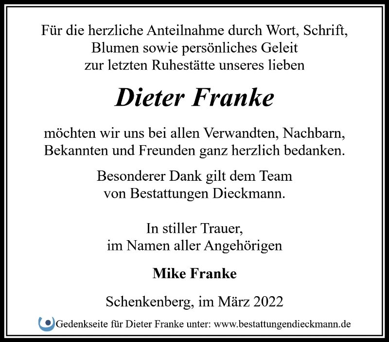 in diesen Tagen fühlen wir mit Ihnen und wünschen Ihnen von Herzen, dass Sie aus den glücklichen Erinnerungen Kraft schöpfen, um positiv in die Zukunft zu gehen. Diese Gedenkseite möge Ihnen dabei helfen, Ihre Trauer zu teilen und das Andenken gemeinsam wachzuhalten.