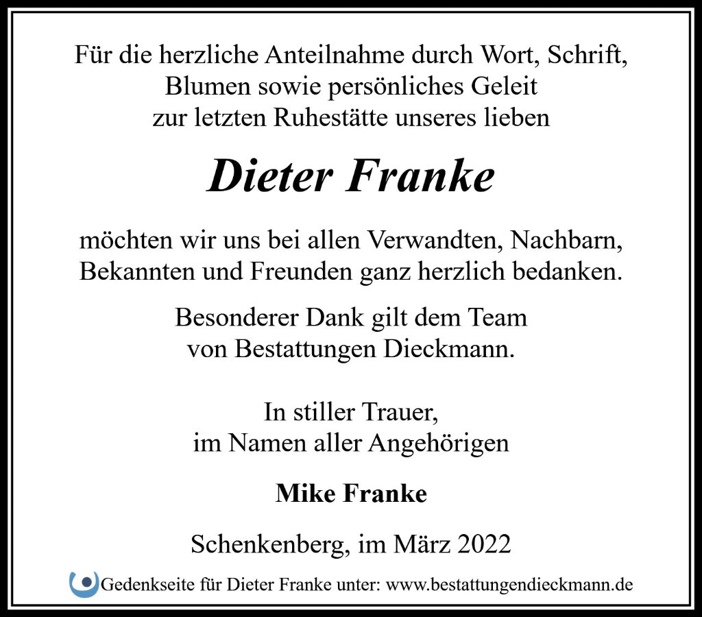 Dieter Frankegestorben am 12. Februar 2022