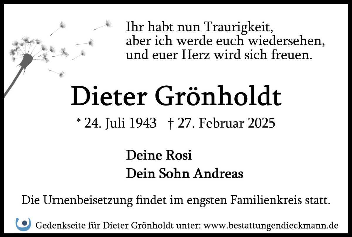 Dieter Grönholdtgestorben am 27. Februar 2025