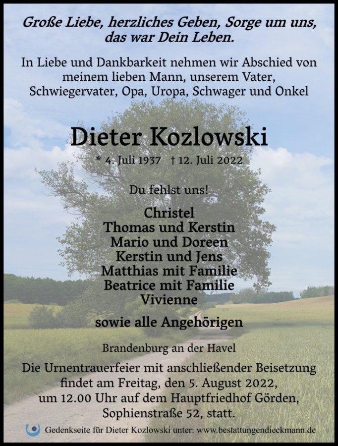 Dieter Kozlowskigestorben am 12. Juli 2022