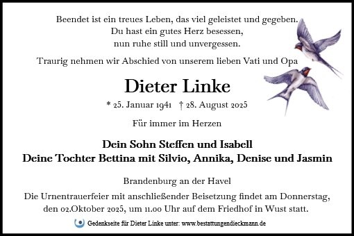 liebe bettina lieber steffen nebst kinder und familie mein tiefes aufrichtiges beileid zum tode eurers vaters aus der tiefe meinens herzens und meiner seele sende ich euch alle kraft und liebe die ihr braucht und gottes segen von herzen ich bin ja auch noch in tifer trauer da meinen herzallerliebeste mama auch ende februar plötzlich verstarb was mich sehr tief hatt fallen lassen . es grüt euch und umarmt euch von herzen mathias grunwald 04179 leipzig gröpplerstrasse 74