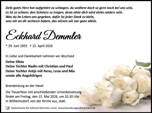 Unfassbar, dass Du nicht mehr bist, doch wunderbar zu wissen, dass Du warst. Ich kann es garnicht glauben. Ich wünsche der Familie viel Kraft in der schweren Zeit. Mein Beileid Bianca Nauen Blumenparadies ⁰