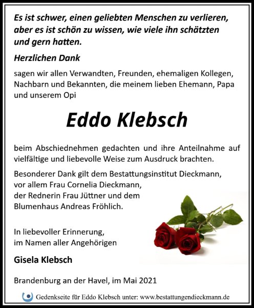 Eddo Klebschgestorben am 28. April 2021