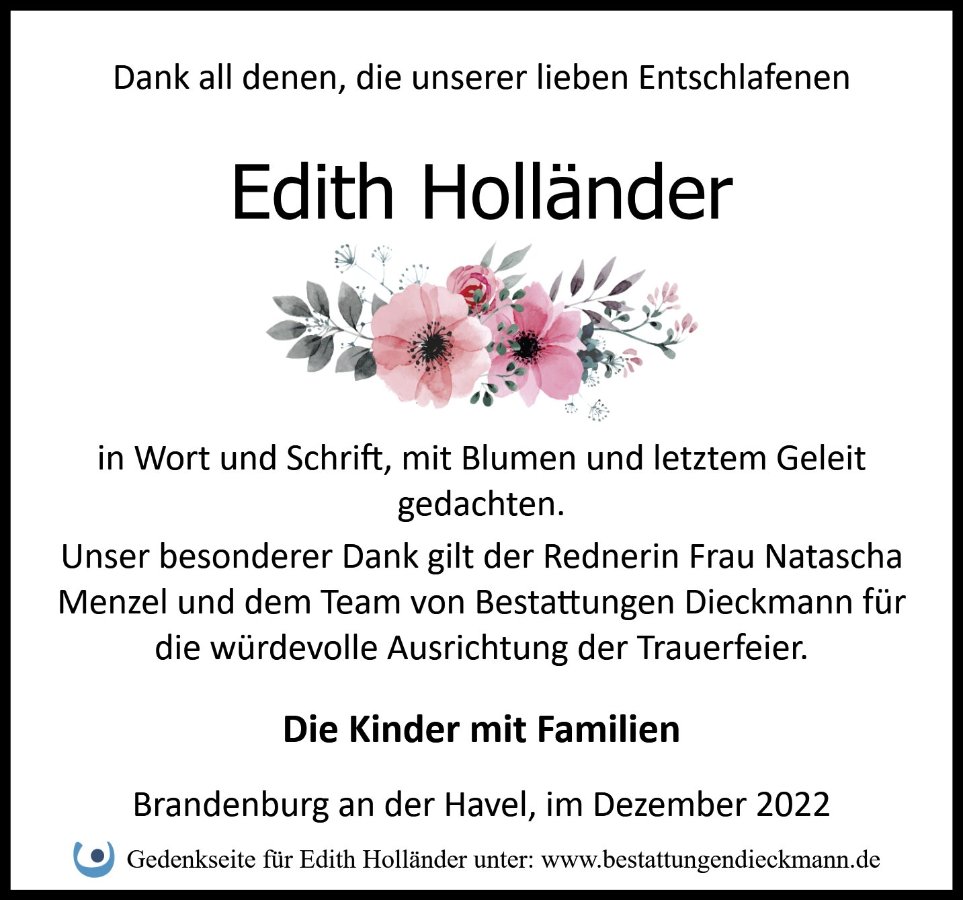 Edith Holländergestorben am 21. Oktober 2022