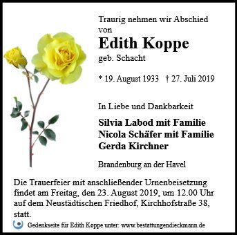 gestorben am 27. Juli 2019 in Brandenburg an der Havel