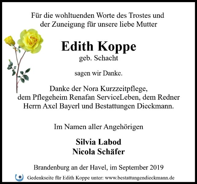 Edith Koppegestorben am 27. Juli 2019