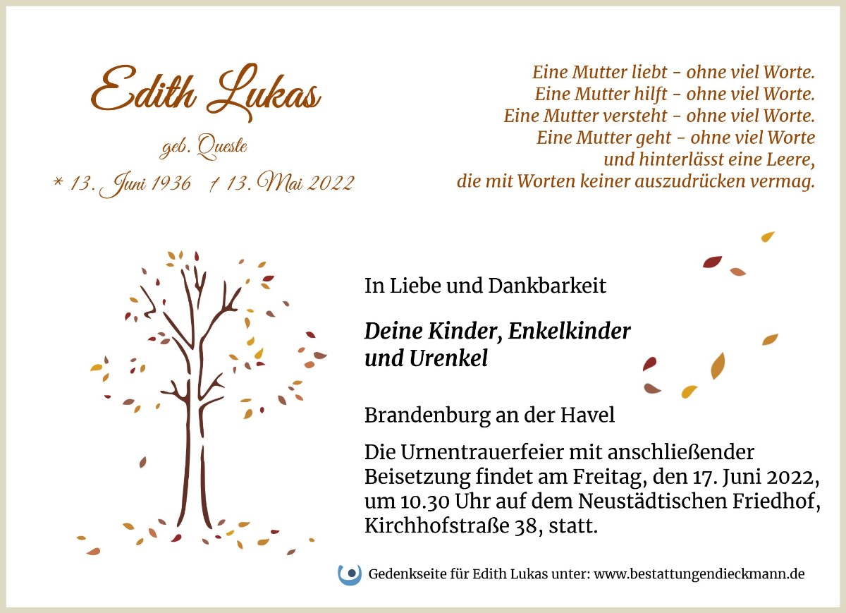 Edith Lukasgestorben am 13. Mai 2022