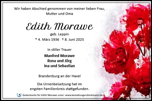 wir wünschen Ihnen für die kommende Zeit viel Kraft und dass es Ihnen gelingt, dankbar auf die positiven Erinnerungen zurückzublicken. Diese Gedenkseite möge Ihnen dabei helfen, Ihre Trauer zu teilen und das Andenken gemeinsam wachzuhalten.