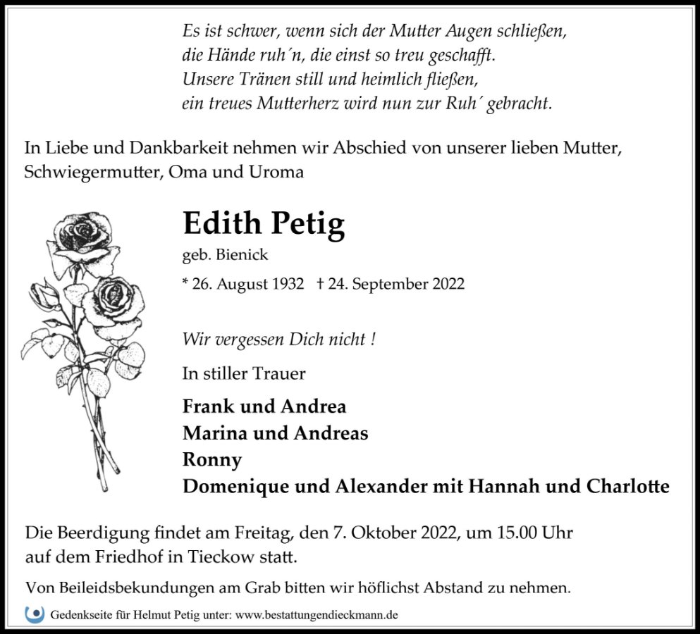 gestorben am 24. September 2022 in Havelsee OT Tieckow