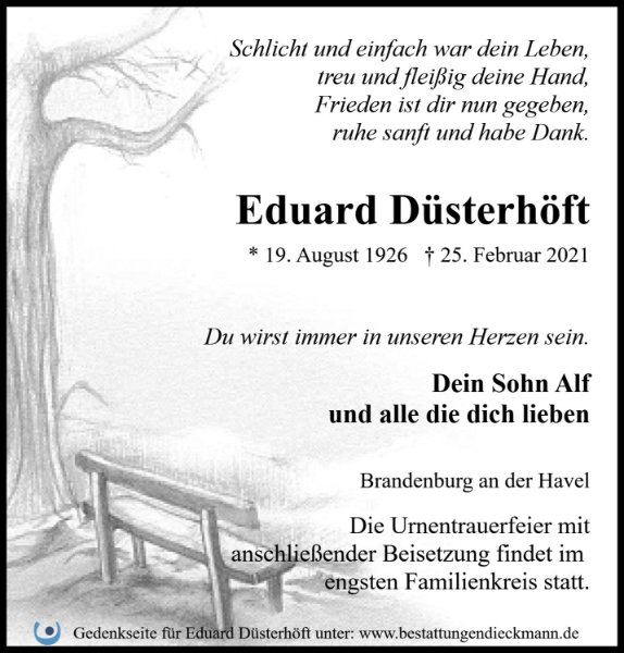 wir wünschen Ihnen von Herzen viel Kraft, dass Sie Menschen um sich haben, die Ihnen in dieser schweren Zeit beistehen und Halt geben. Zusätzlich können Sie auf dieser Gedenkseite Erinnerungen teilen und so das Andenken gemeinsam wachhalten.