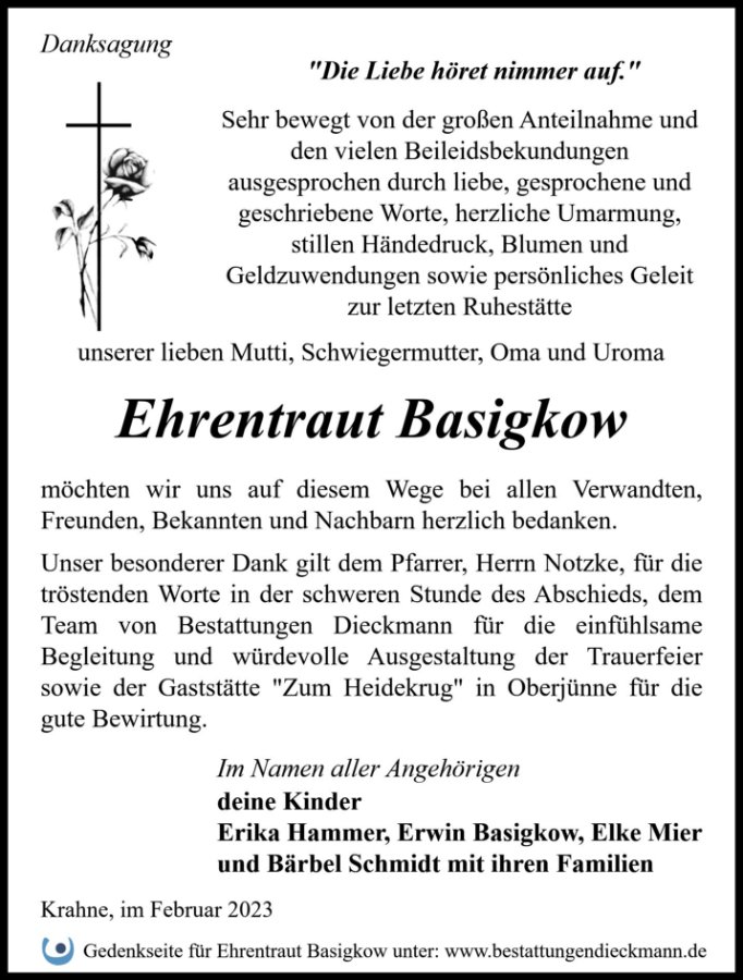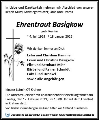 gestorben am 18. Januar 2023 in Kloster Lehnin OT Krahne