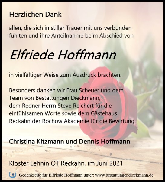 Elfriede Hoffmanngestorben am 31. Mai 2021