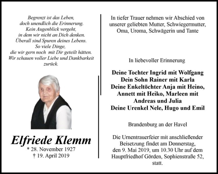 Elfriede Klemm geb. Stein