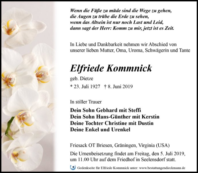 wir wünschen Ihnen für die kommende Zeit viel Kraft und dass es Ihnen gelingt, dankbar auf die positiven Erinnerungen zurückzublicken. Diese Gedenkseite möge Ihnen dabei helfen, Ihre Trauer zu teilen und das Andenken gemeinsam wachzuhalten.