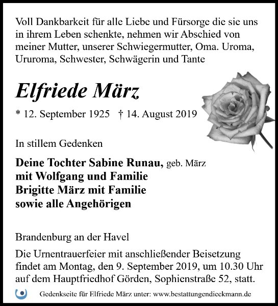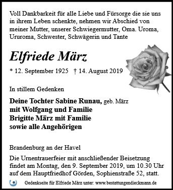 gestorben am 14. August 2019 in Brandenburg an der Havel