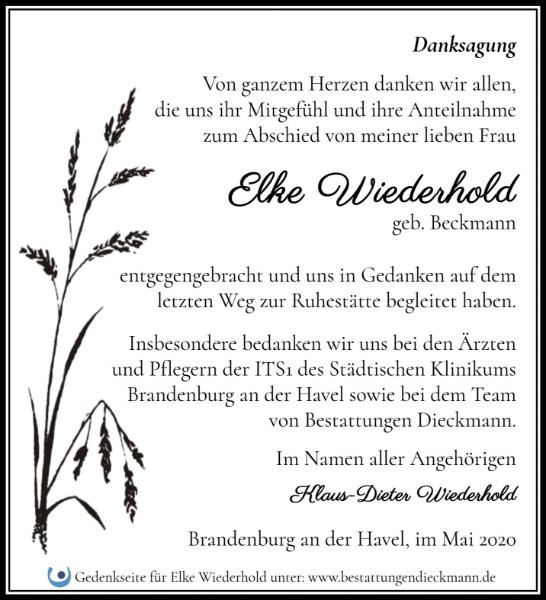 Elke Wiederholdgestorben am 27. April 2020
