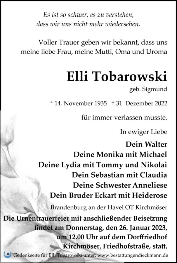 gestorben am 31. Dezember 2022 in Brandenburg an der Havel OT Kirchmöser