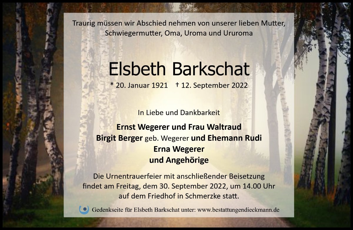 Elsbeth Barkschatgestorben am 12. September 2022